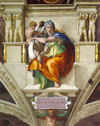 Sibila de Delfos. Fresco de la Capilla Sixtina (1509). Miguel Ángel.