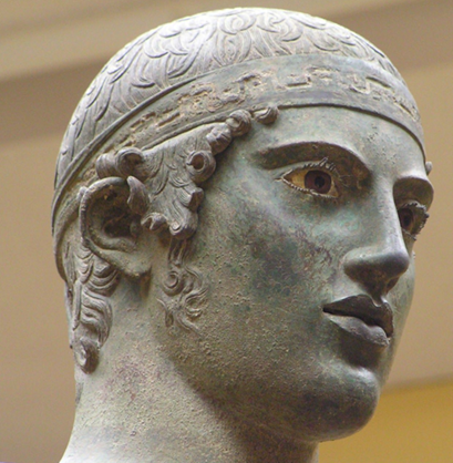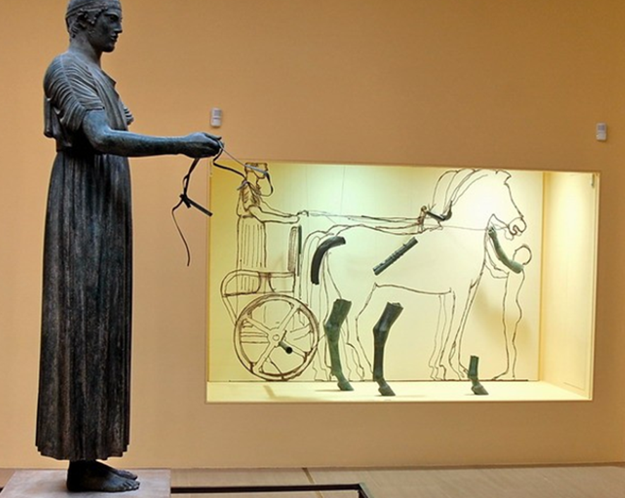 Escultura de bronce realizada sobre el año 475 a.C. Se desconoce el autor, pero si el donante, el tirano de Sicilia Polizalo de Gela vencedor en una carrera de cuadrigas durante los Juegos Píticos.