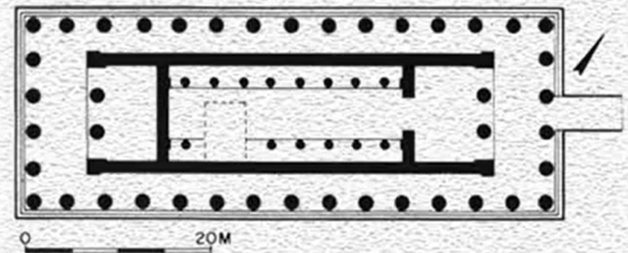 Edificio de planta circular rodeado por 20 columnas dóricas, aunque en su interior se hallaban columnas corintias.