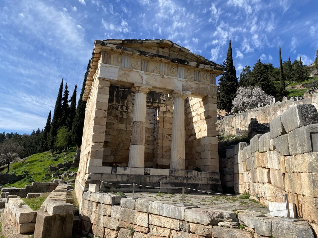 Arriba se encuentra el tesoro de los atenienses. Obviamente reconstruido.