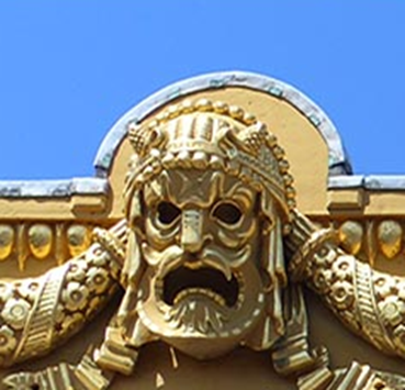 Apolo, dios de las artes, levanta una lira coronando el edificio.