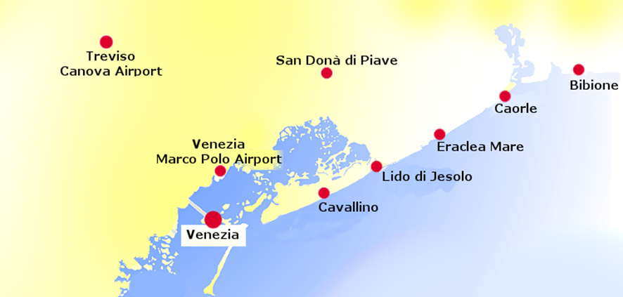 Es una fina lengua de litoral entre la laguna de Venecia y el nacimiento del río Piave.